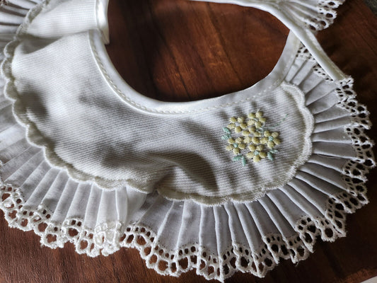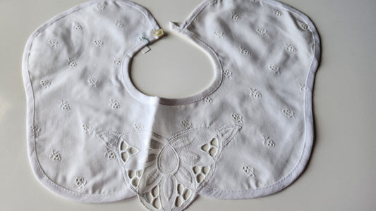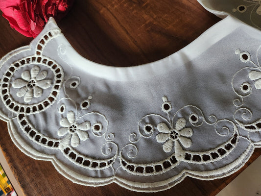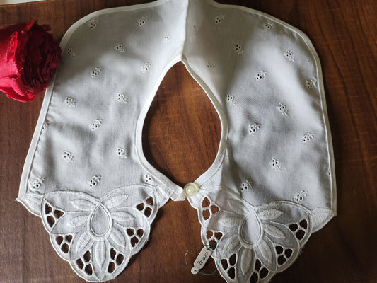 Ancien col en tissu broderie lumineuse en relief blanc B7-64