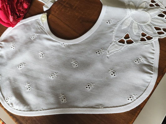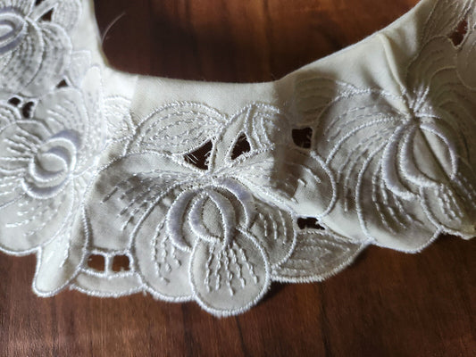 Ancien col en tissu broderie fleur travaillé blanc B7-65