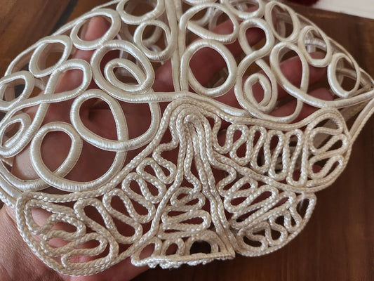 Ancien col en tissu broderie de fleur en relief teinte écrue B7-63