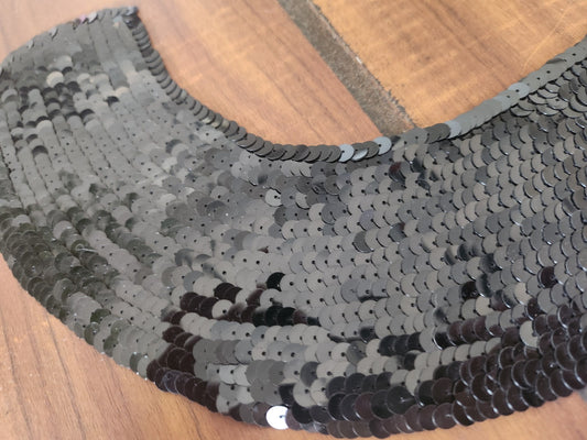 Ancien col en tissu sequin noir B3-3