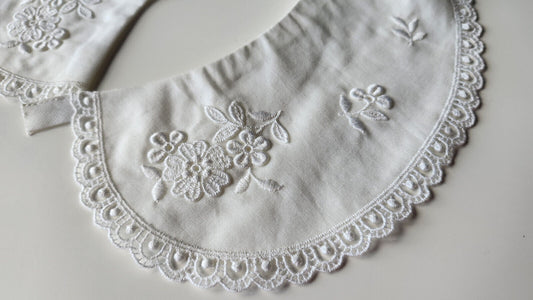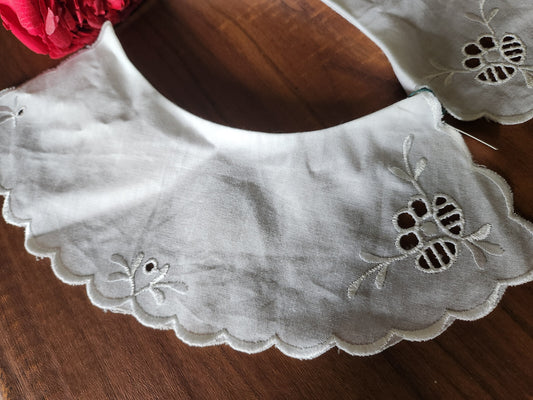 Ancien col en tissu broderie fleur travaillé blanc B7-76