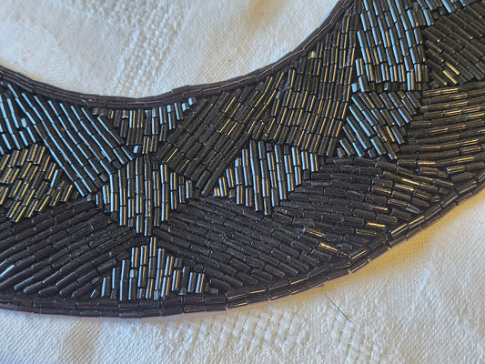 Ancien col en tissu sequin noir B3-4