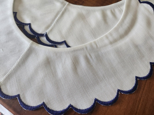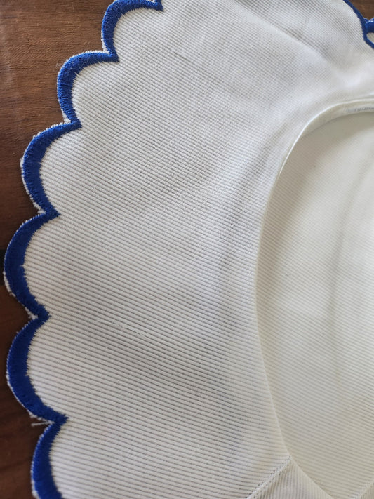 Ancien col en tissu tramé broderie bleu feston à l'unité B3-1
