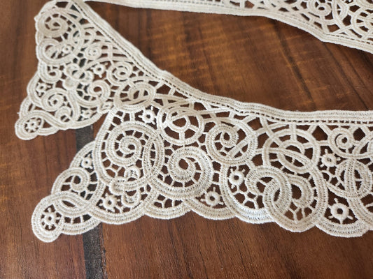 Ancien col dentelle guipure satiné creme B7-28