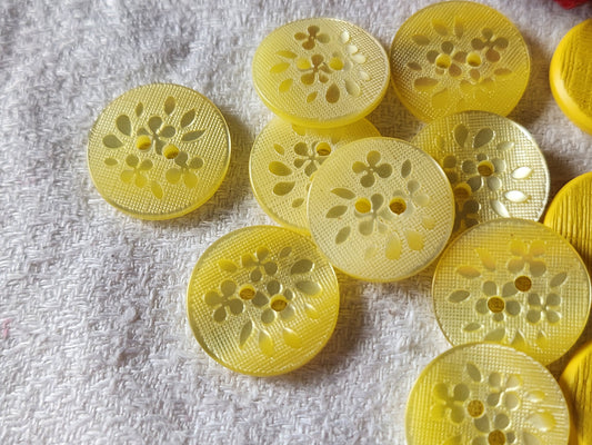 Lot 15 boutons vintage jaune à trous 2 series 1,7 et 1,8 cm ref 7066
