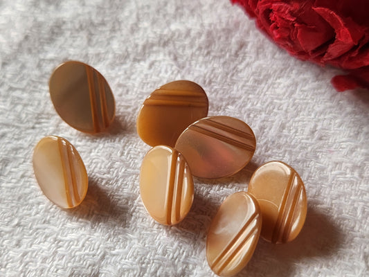 Lot 6 boutons anciens en nacre ovale pied marron 1 cm sur 1,3 cm ref 7067