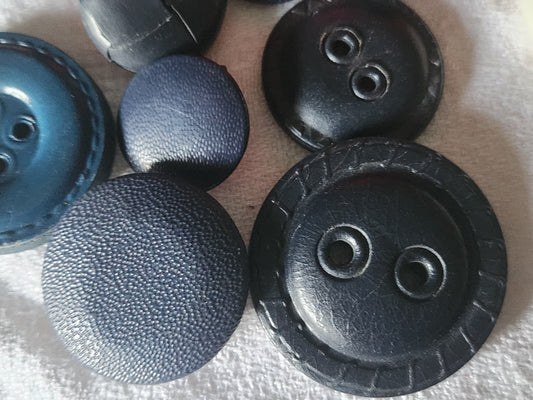 Lot 10 boutons en cuir panaché vintage bleu originaux 1,5 à 3,5 cm ref 7003