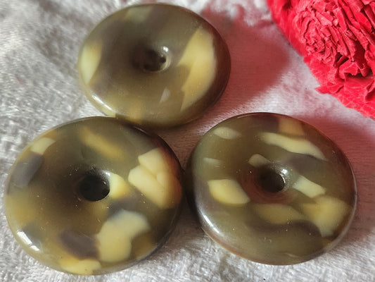 Trio gros boutons anciens vert moucheté veste trous 3,4 cm ref 7020