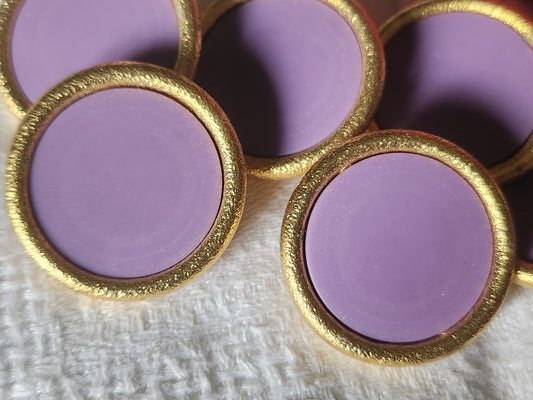 Lot 6 gros et lourds boutons vintage violet doré métal 2,8 cm ref 7025