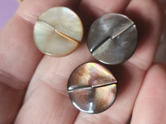 Trio boutons vintage en nacre jolie teinte panaché pied 1,7 cm D4G