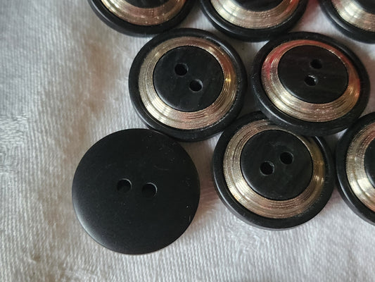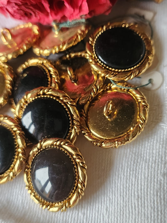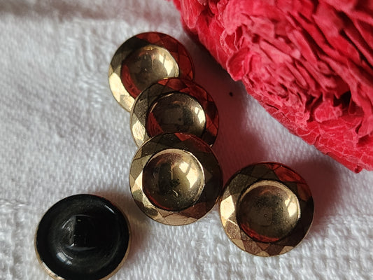 Lot 6 jolis boutons vintage en Métal noir doré pied bombé 2 cm ref 7072