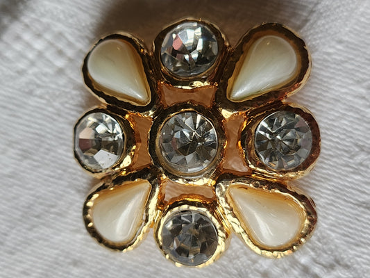 Enorme bouton vintage Kitch strass en verre pied 3,7 cm ref 7075