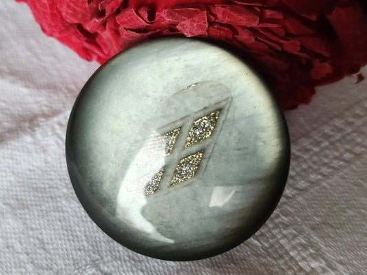 Enorme bouton vintage gris inclusion paillette superbe 4 cm ref 7080