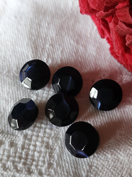 Lot 6 boutons anciens en nacre bleu foncé facette pied 0,9 cm mini ref 7081