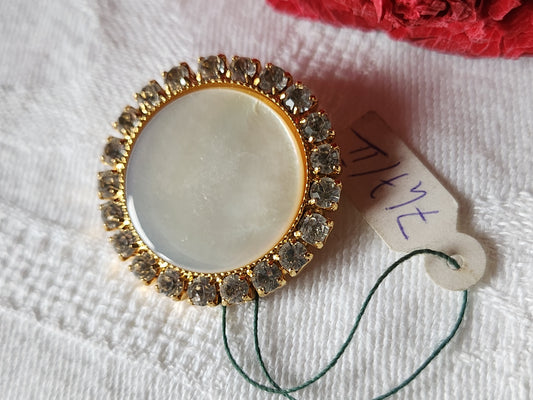Gros bouton vintage coeur en nacre couronne de strass métal doré 2,7 cm D4L