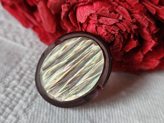 Joli bouton vintage en nacre ovale strié 2,2 sur 1,8 cm D4O