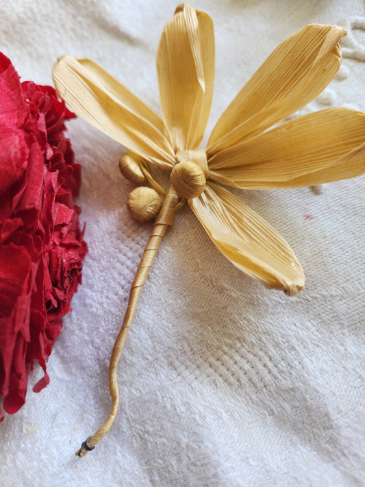 Ancien ornement chapeau creation modiste fleur rafia vetement beige T0-1