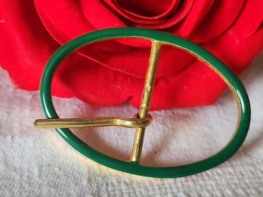 Boucle de ceinture ancienne vintage vert métal doré 5,3 cm sur 3,5 cm