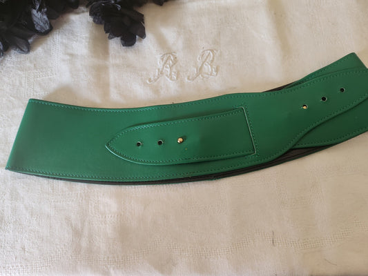 Ceinture ancienne vintage large verte jolie 72 cm à 76 cm B9