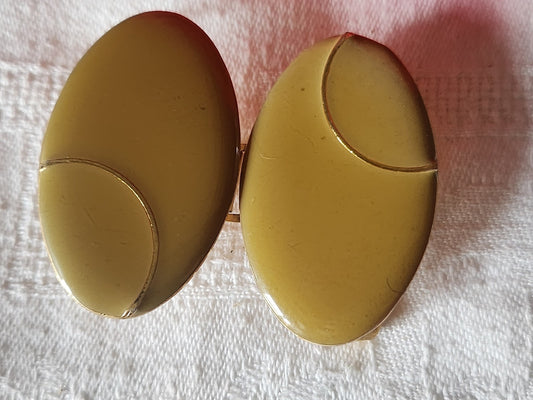 Boucle de ceinture ancienne vintage jaune en deux parties