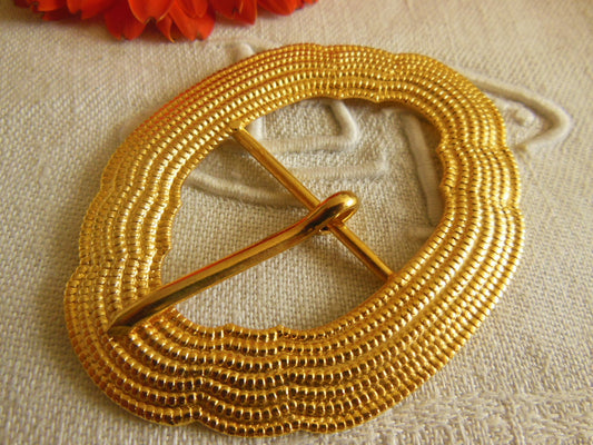 Boucle de ceinture grosse ancienne métal doré 5,5 sur 7,1 cm neuve mercerie