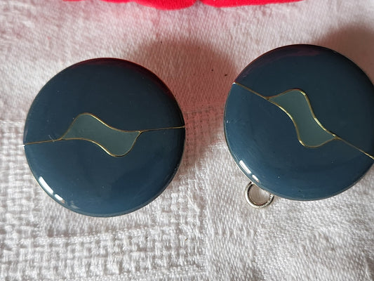 Boucle de ceinture ancienne vintage bleu gris en deux parties
