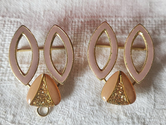 Boucle de ceinture ancienne vintage rose métal en deux parties