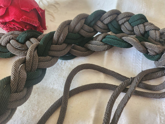 Ceinture ancienne vintage tréssée gris vert reglable B9