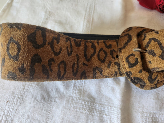 Ceinture ancienne vintage leopard daim marron 80 cm à 90 cm B9