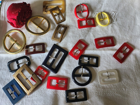 Lot de 85 boucles de ceinture anciennes vintage mode collection mercerie