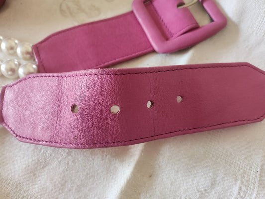 Ceinture ancienne vintage perlé rose barbie kitch trés typée 70 cm à 76 cm B9