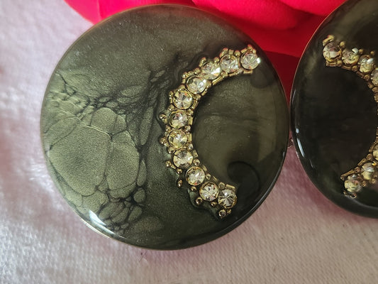 Boucle de ceinture ancienne vintage verte metal strass en deux parties