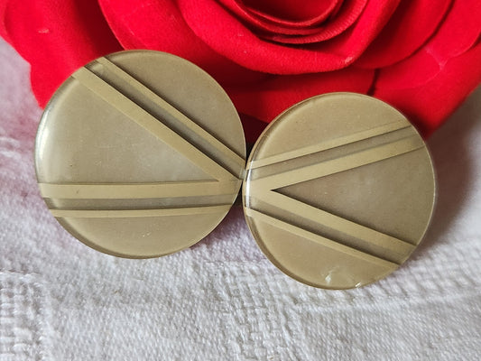 Boucle de ceinture ancienne grosse marron marbré 12 cm en deux parties ME9