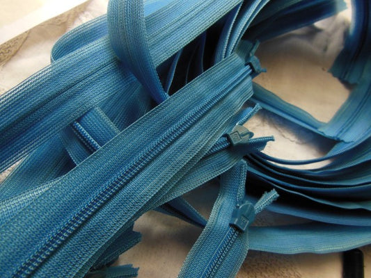 Fermeture éclair 35 cm bleu turquoise invisible foncé non- séparable A18