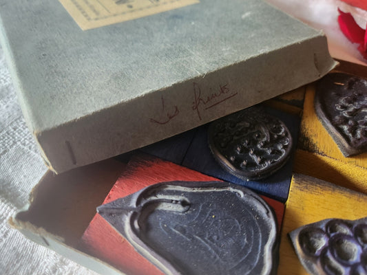 Lot 12 tampons vintage ecole collection boite fruit