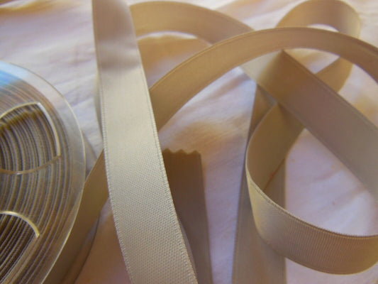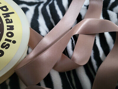 Ruban ancien satin vintage marron clair large 2 métres sur 2,5 cm double face A2