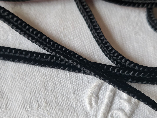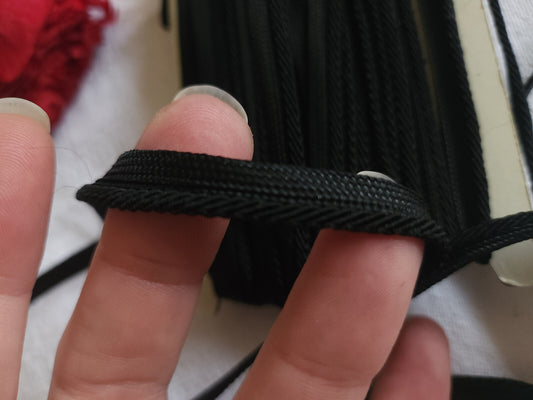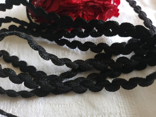 Galon vintage bordure passe poil noir satiné 5 mètres sur 0,7 cm B6