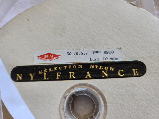 Ruban fin ancien blanc effet doublé 10 mètres sur 1 cm mercerie vintage B5 N°30