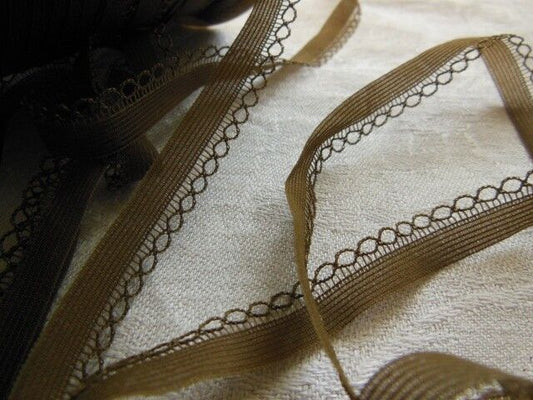 Dentelle vintage marron avec bordure légère 5 mètres sur 1 cm A4