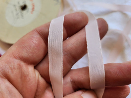 Ruban fin ancien nylon rose 10 mètres sur 1 cm modiste mercerie B5 n°32