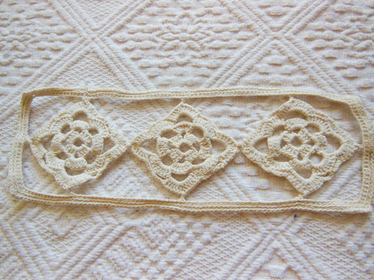 Incrustation ancienne grande dentelle rideau crochet 21,5 cm sur 6,8 n°2 T1-26