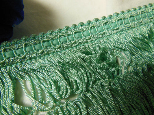 Galon ancien vert eau bleu soyeux franges 4 mètres 10 sur 4,1 cm B3