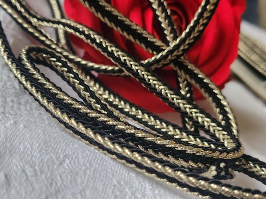 Galon vintage noir doré made In France 2 métres sur 0,6 cm A3